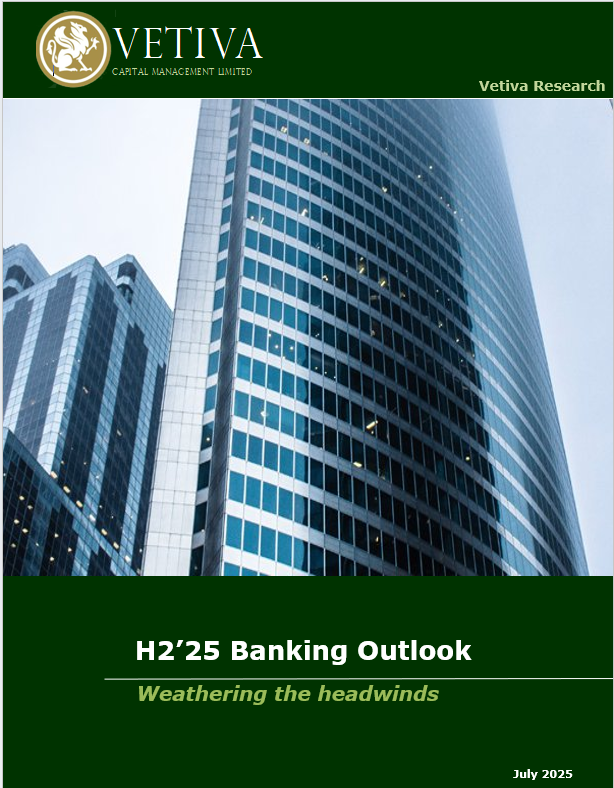 Banking, Outlook reportsH2’25 Banking Sector Outlook – Weathering the headwinds Posted on July 23, 2025August 13, 2025 by Vetiva Capital 23 Jul Download Report... For standard subscribers only.Login Continue reading →